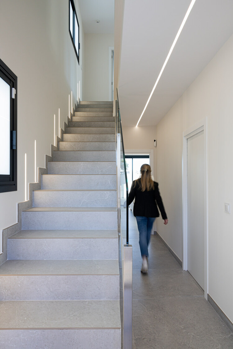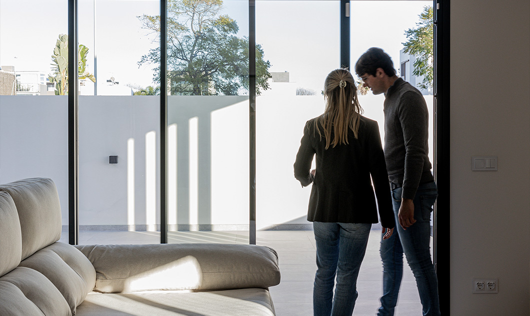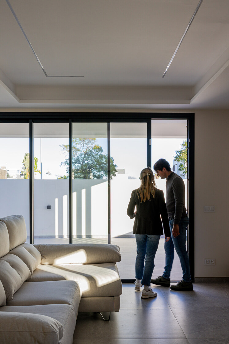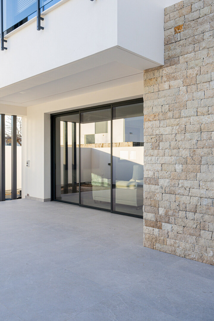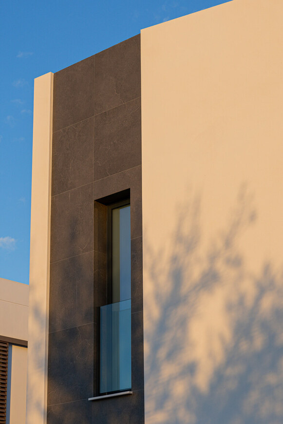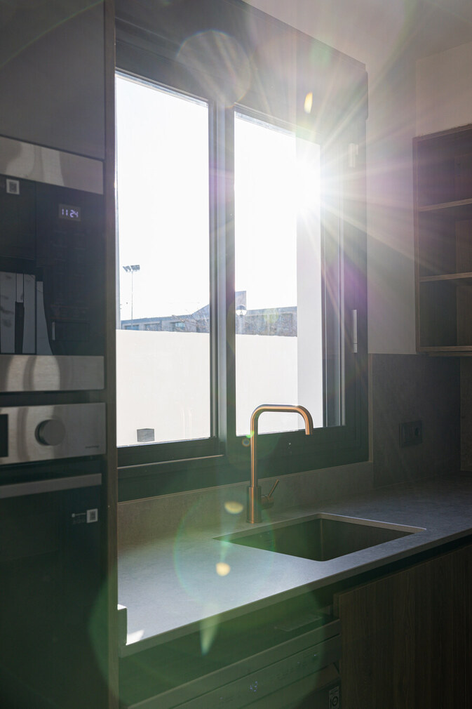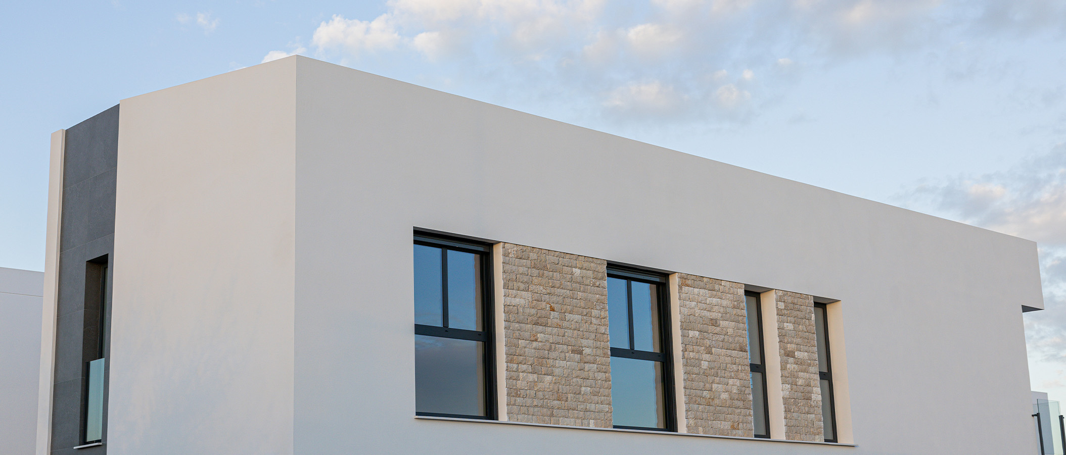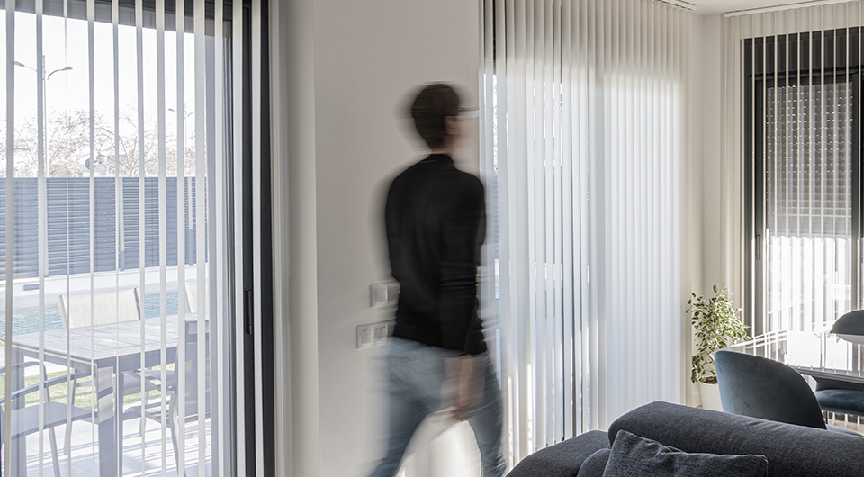 Vivienda unifamiliar de diseño minimalista donde la carpintería de aluminio se convierte en un elemento arquitectónico protagonista. Puerta pivotante, ventanas correderas y practicables, junto con una puerta interior separadora de ambientes, conforman un conjunto coherente que combina estética depurada y máxima funcionalidad.