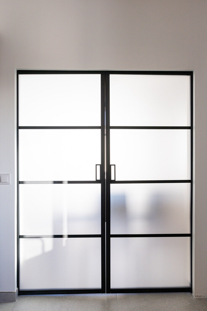 Cada elemento de carpintería ha sido diseñado para integrarse de manera fluida con la arquitectura. La puerta pivotante, de apertura suave y giro imponente, recibe al visitante marcando el carácter de la vivienda. Las ventanas correderas de gran formato eliminan las barreras entre interior y exterior, enmarcando las vistas y aportando luminosidad. Las practicables, estratégicamente ubicadas, facilitan la ventilación cruzada y el confort térmico. En el corazón de la vivienda, la puerta interior separadora de ambientes combina vidrio traslúcido y perfilería minimalista, manteniendo la privacidad sin renunciar a la luz, reforzando así la continuidad visual y el diseño limpio que caracteriza al conjunto.