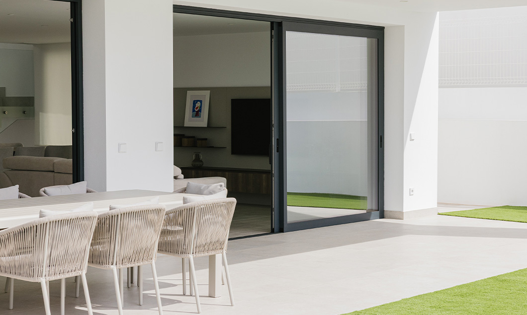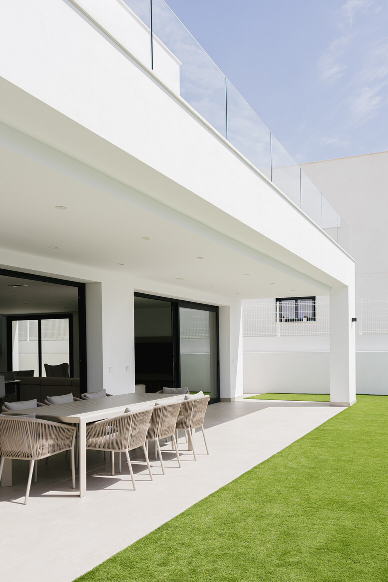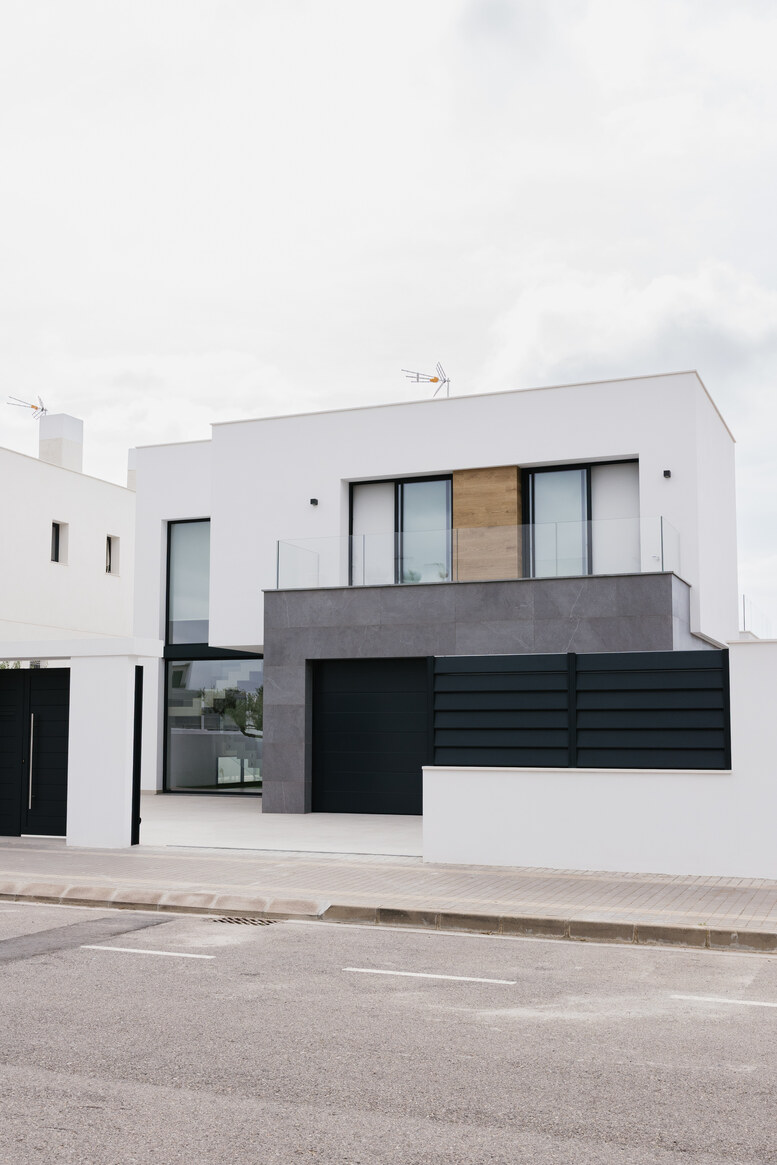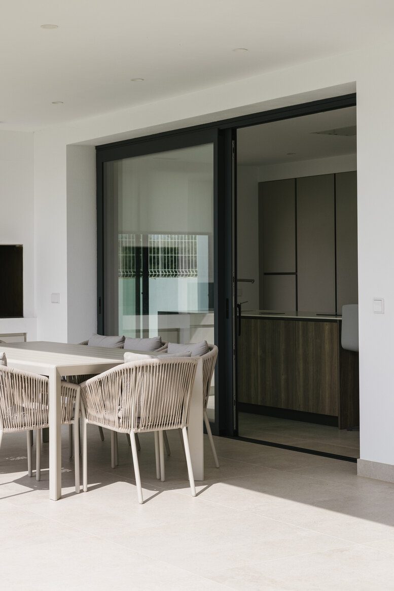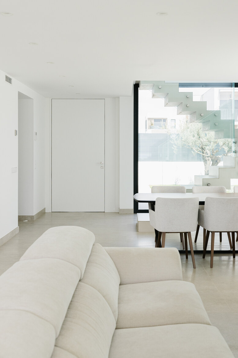 Esta vivienda de líneas puras y volúmenes contundentes integra carpinterías de aluminio minimalistas que maximizan la superficie acristalada y potencian la conexión visual con el exterior. La precisión técnica y el cuidado estético se unen para lograr aperturas amplias, seguras y altamente eficientes, creando en cada estancia una sensación de amplitud, confort y exclusividad.